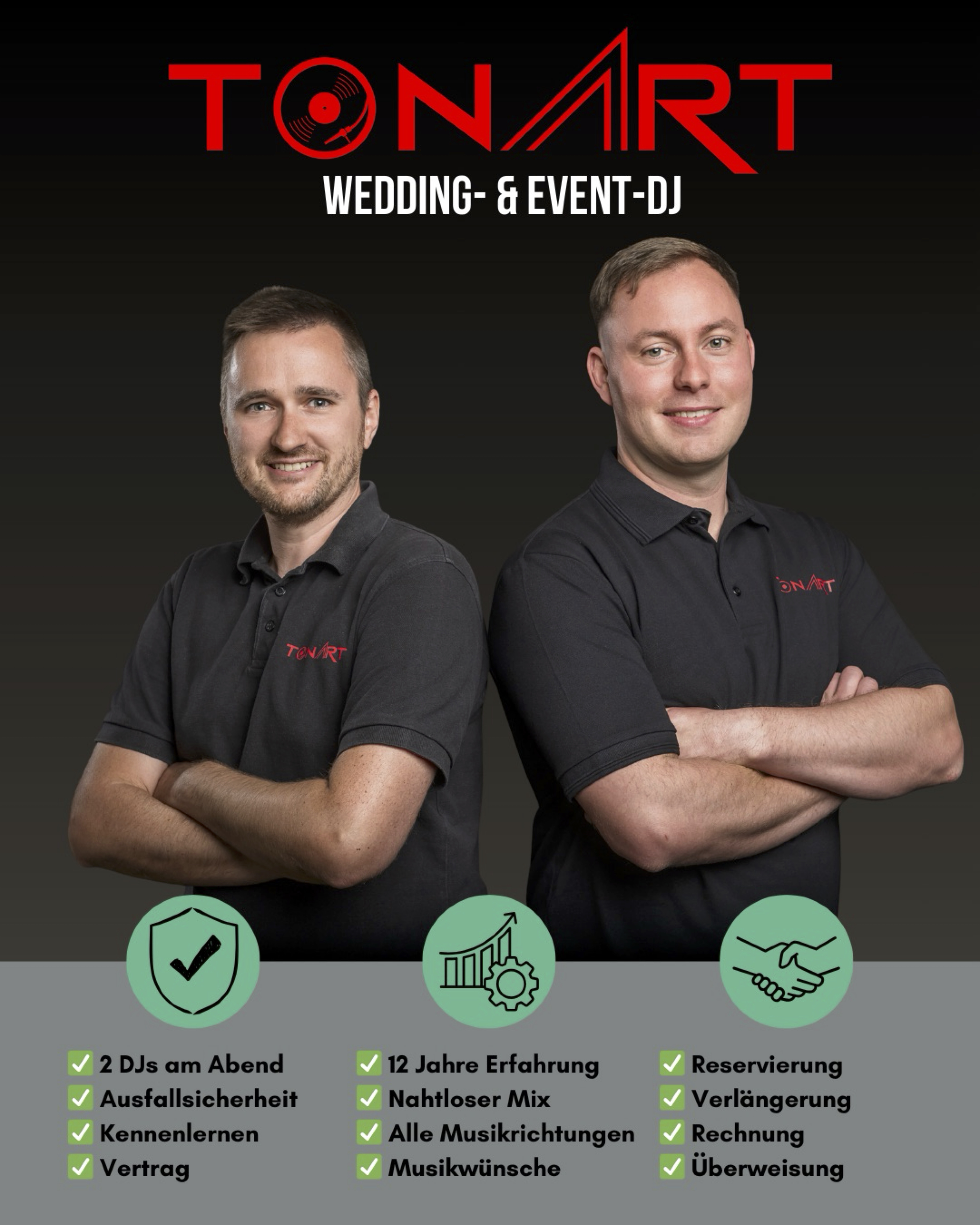 - Immer 2 DJs für maximale Ausfallsicherheit und weitere Vorteile