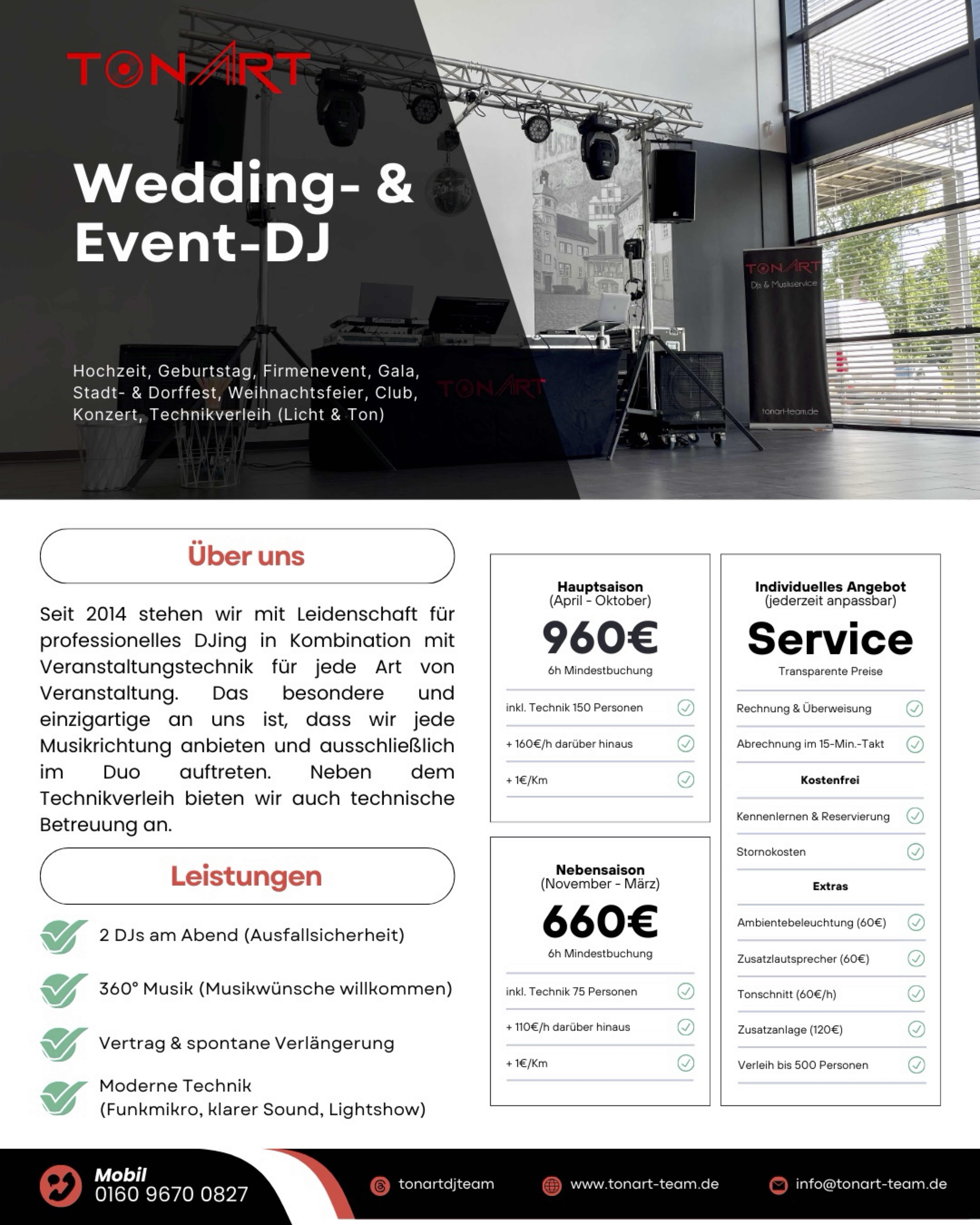 - Licht- & Tontechnik inkl. Technikbetreuung (bis 500 Personen)